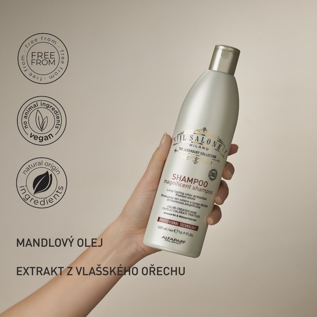 Naneste malé množství šamponu Il Salone Milano Magnificent na mokré vlasy, jemně vmasírujte a důkladně opláchněte. V případě potřeby postup zopakujte.